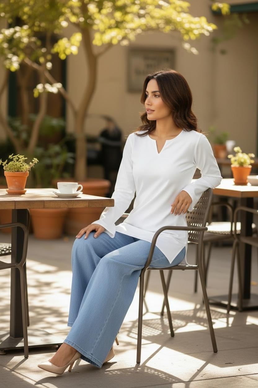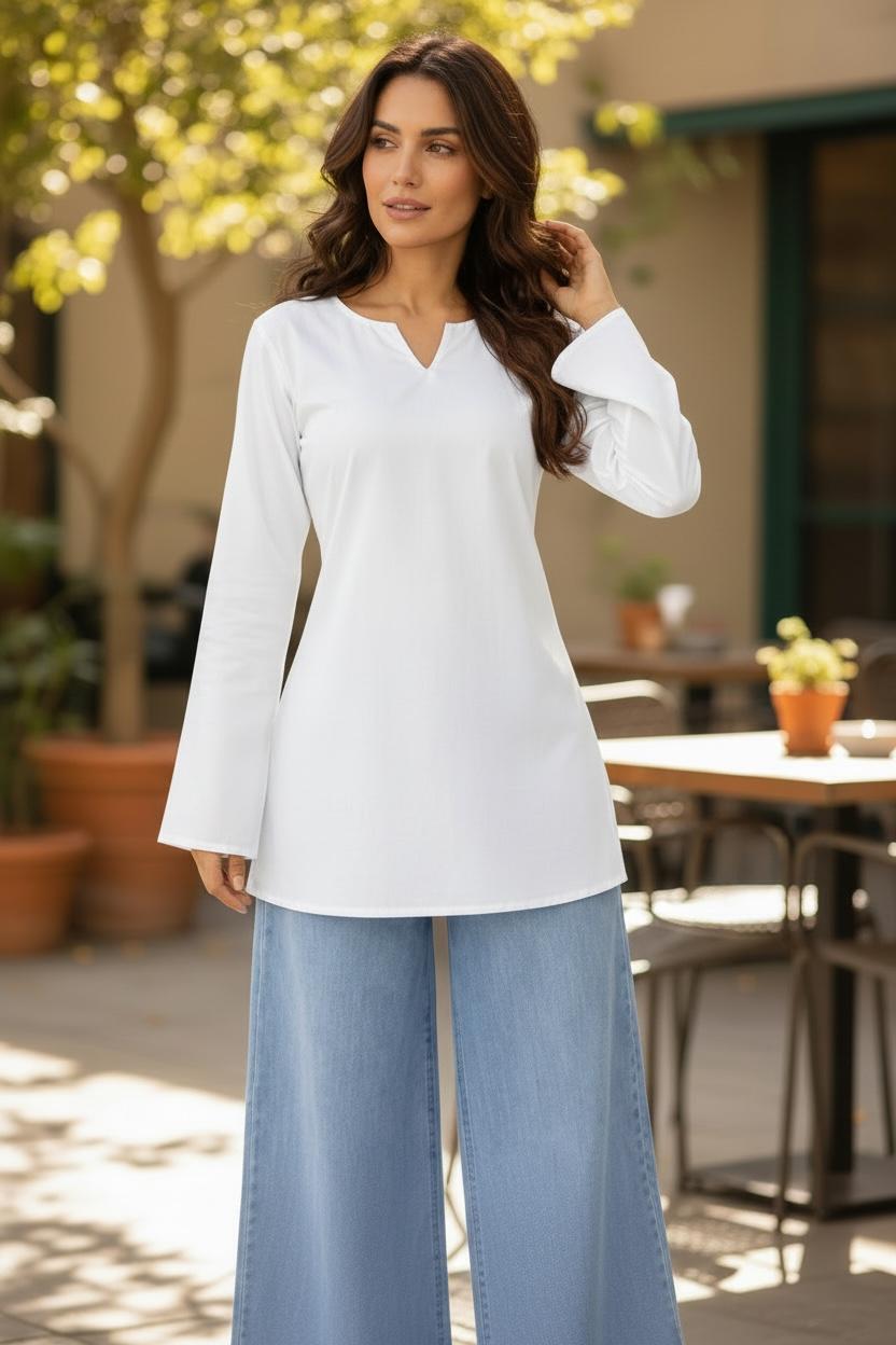 Bell Sleeves Short White Kurti