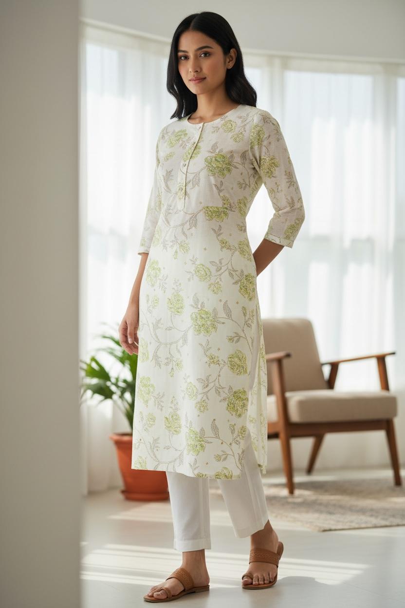 Green white floral kurti